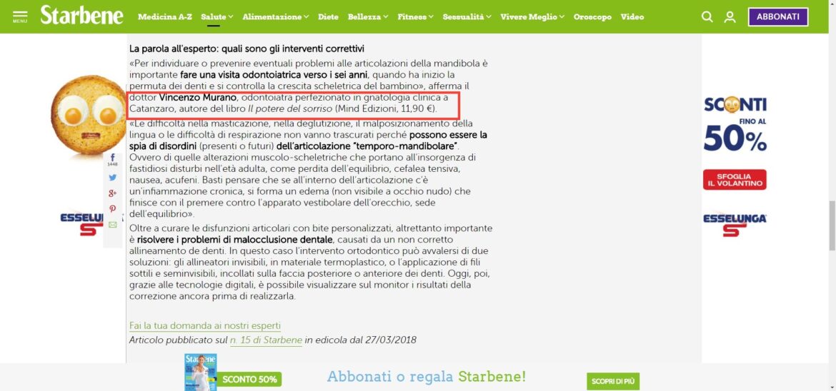 Il potere del sorriso di Vincenzo Murano su Starbene, 27/03/2018