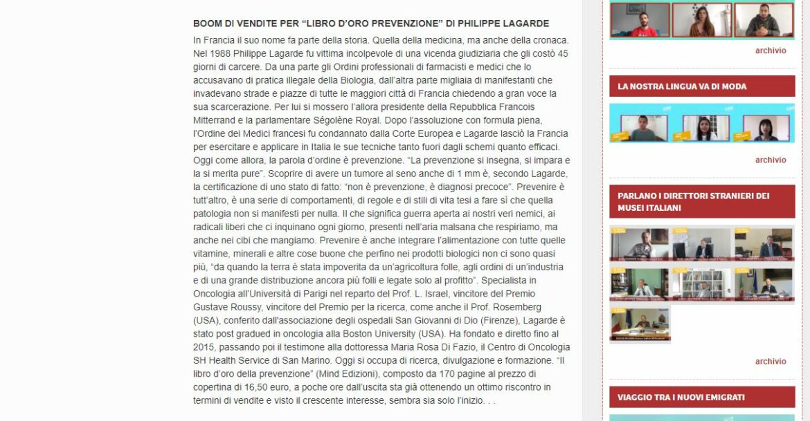 Il libro d’oro della prevenzione su 9Colonne.it, 20/12/2019