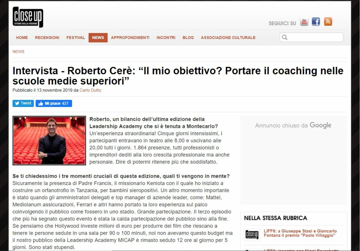 Intervista a Roberto Cerè su Close-up.it, 13/11/2019