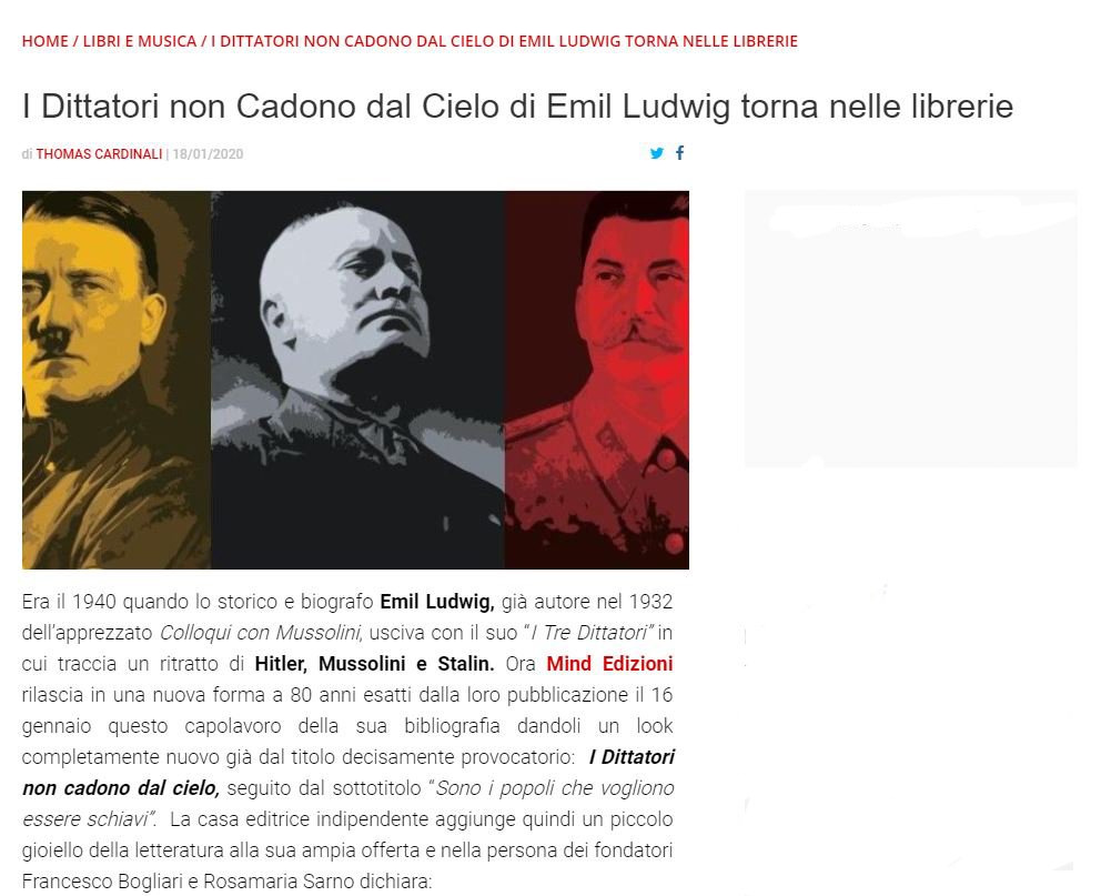 I dittatori non cadono dal cielo di Emil Ludwing su Giornalettismo.com, 18/01/2020
