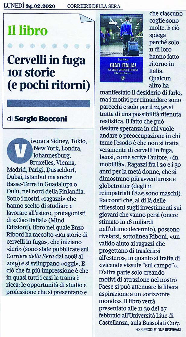 Ciao Italia! di Enzo Riboni su Corriere della Sera, 24/02/2020