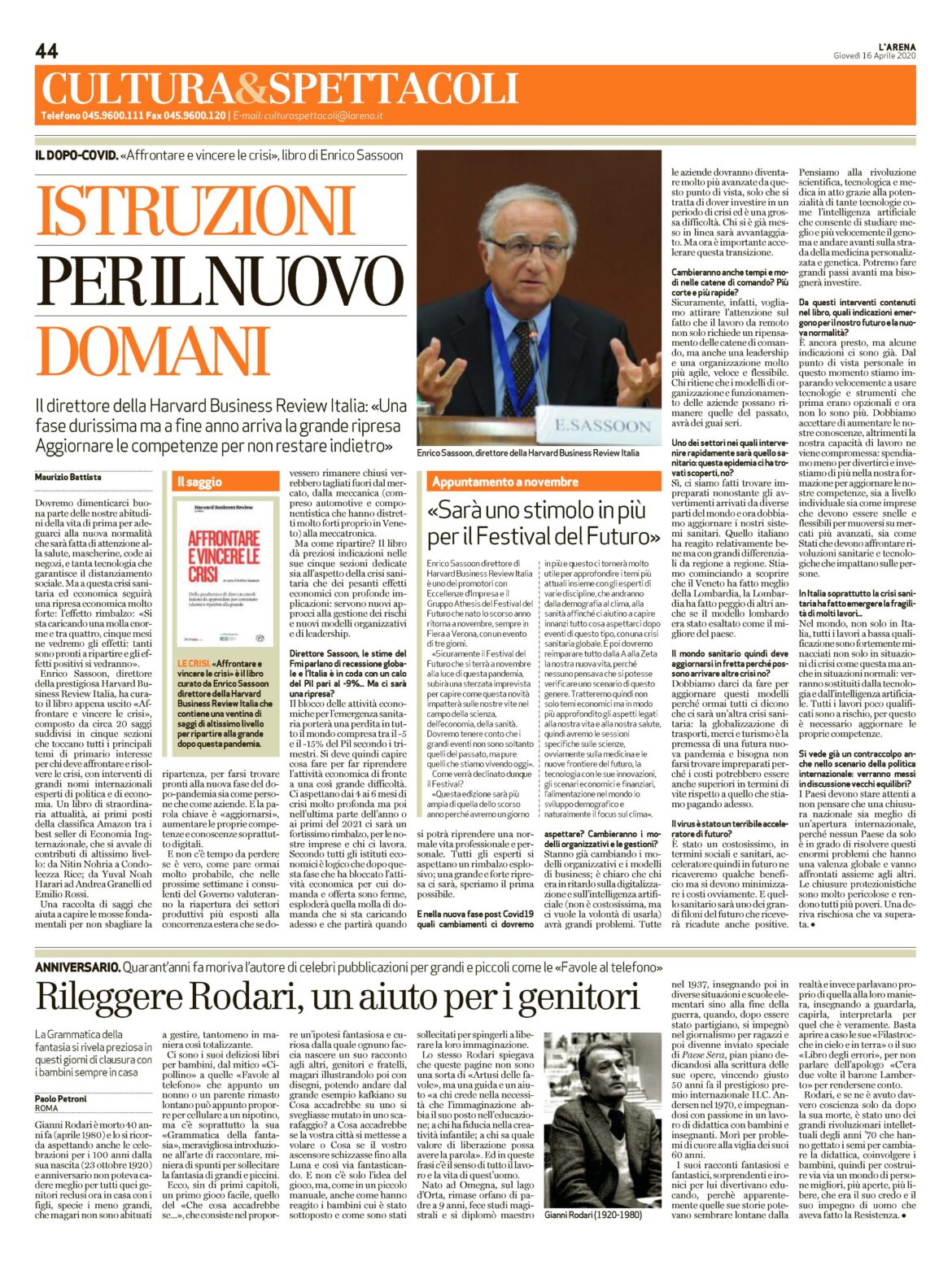 Affrontare e vincere le crisi di Enrico Sassoon su “L’Arena”, 16/4/2020
