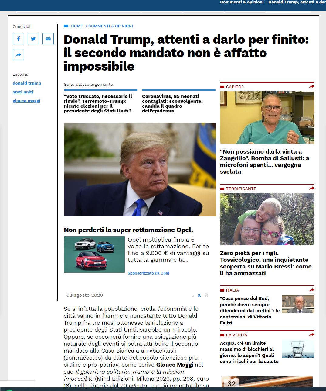 Il guerriero solitario di Glauco Maggi su “Libero” del 2/8/2020