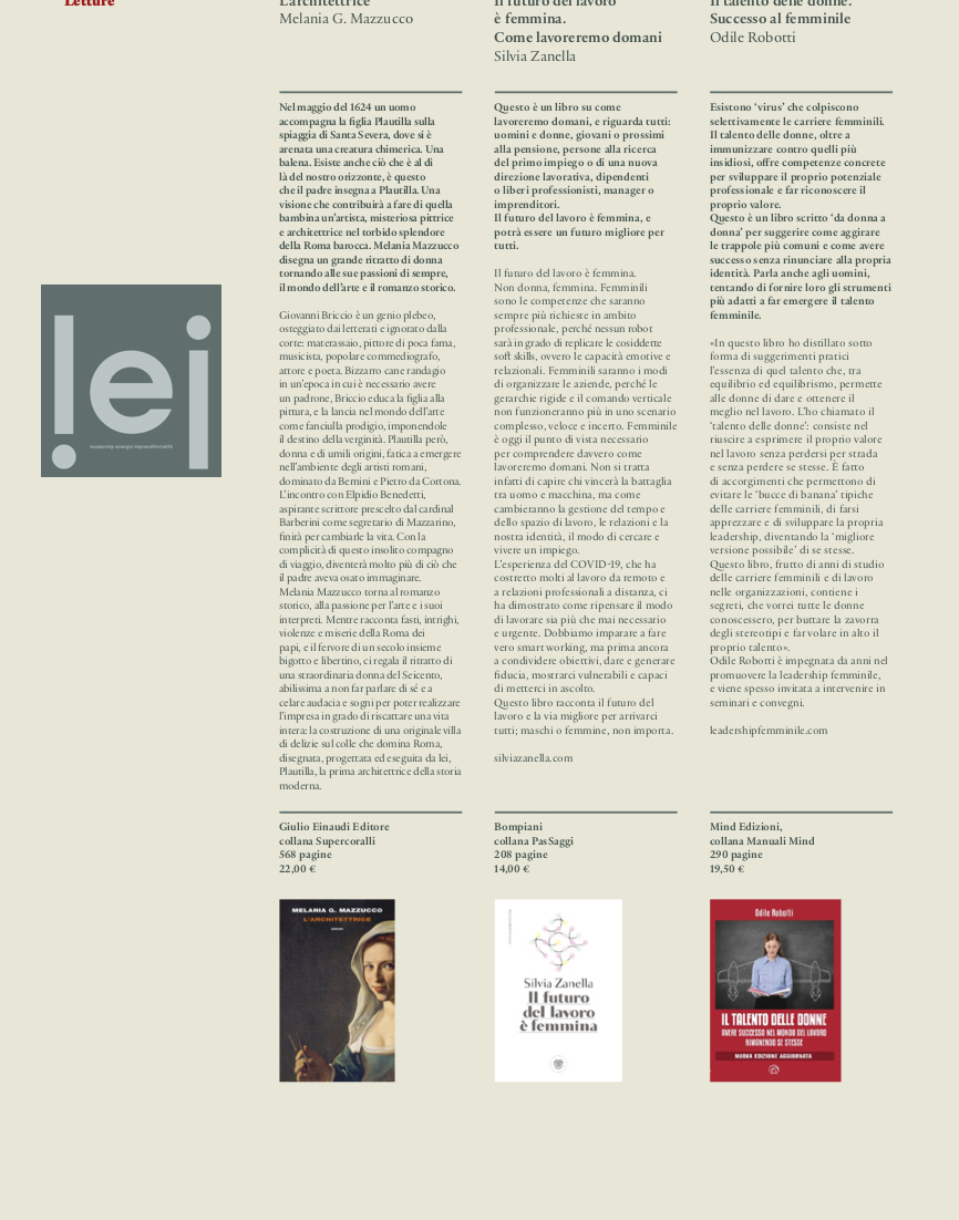 Il talento delle donne di Odile Robotti su “Lei”, magazine di Ca’ Foscari, ottobre 2020