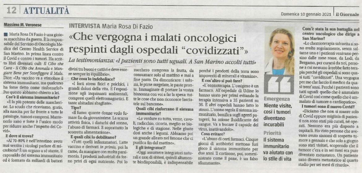 Intervista Maria Rosa Di Fazio, Il Giornale 10/01/2021