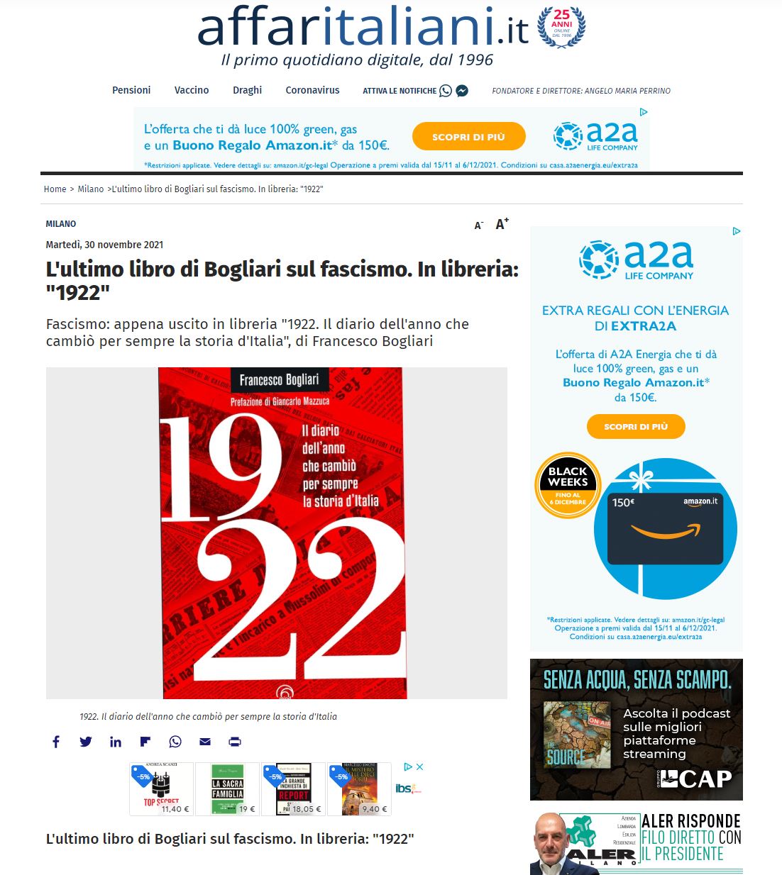 1922 di Francesco Bogliari su Affaritaliani.it, 30/11/2021
