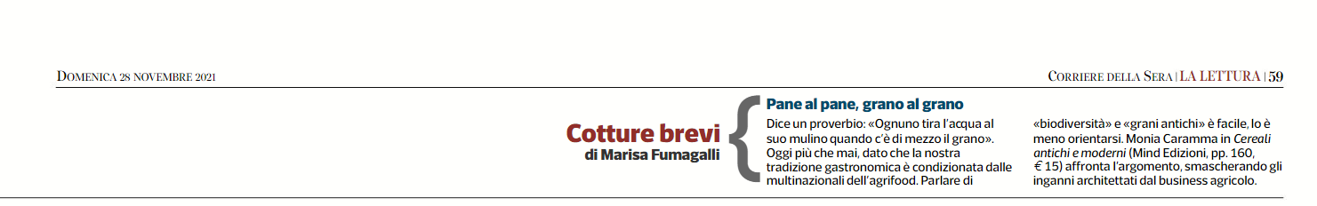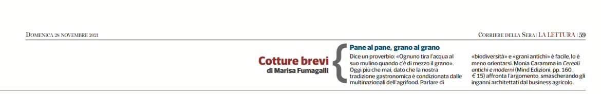 Cereali antichi e moderni su Corriere della Sera, 28/11/2021