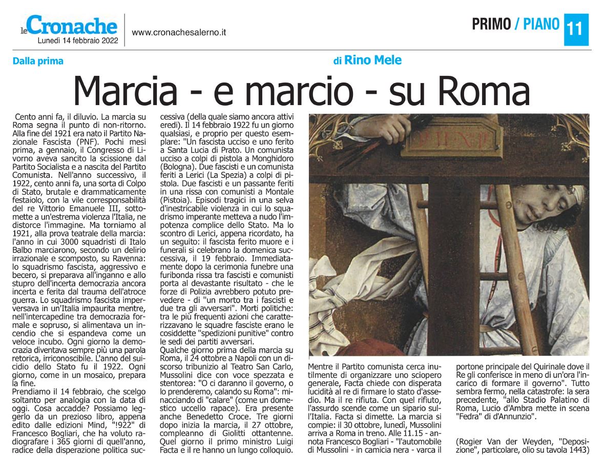 1922 di Francesco Bogliari recensito da Rino Mele su “Le Cronache”, Salerno, 14/2/2022