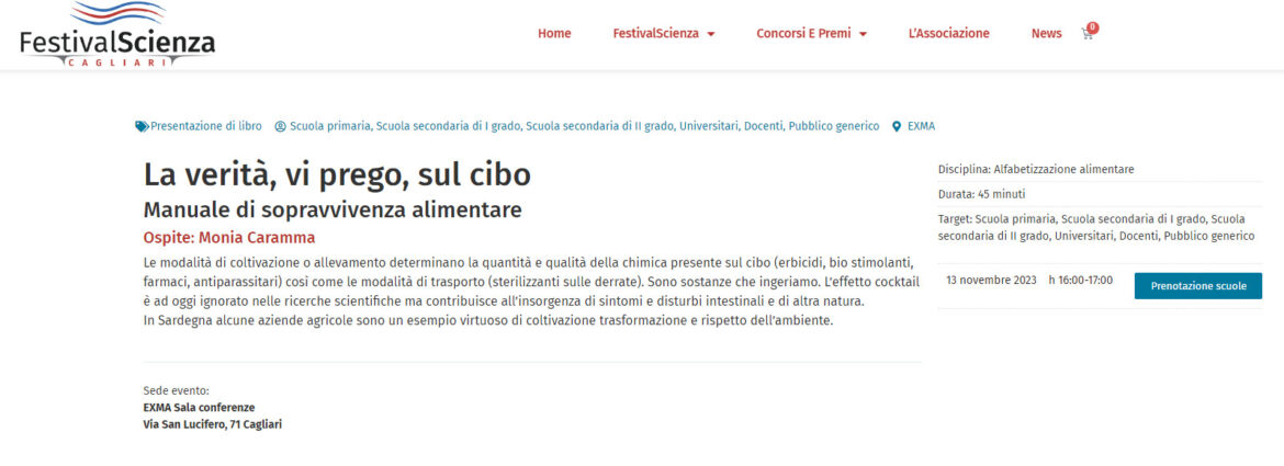 Presentazione di “La verità, vi prego, sul cibo” al FestivalScienza di Cagliari (13 novembre 2023)