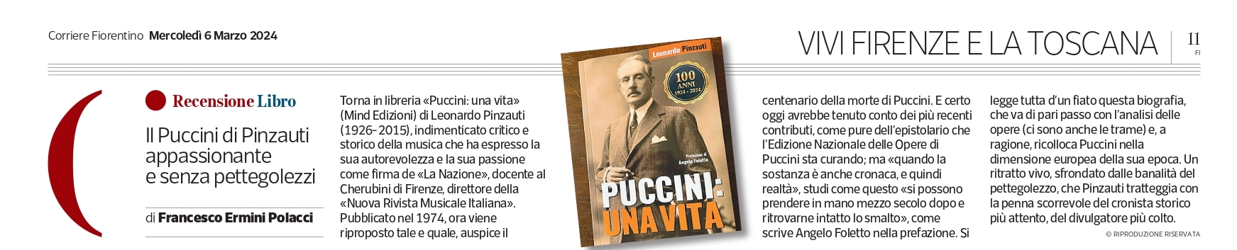 La recensione di “Puccini: una vita” del Corriere Fiorentino (6 marzo 2024)