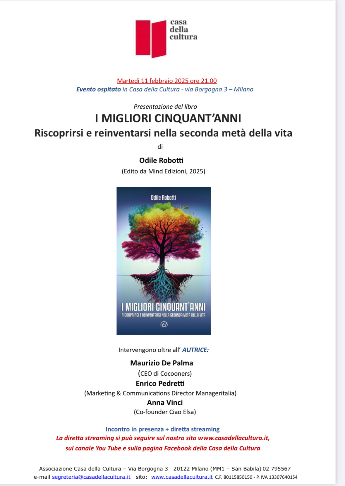 Si è svolta presso la Casa della Cultura di Milano alle 21.00 dell’11 febbraio 2025 la presentazione del libro I migliori cinquant’anni di Odile Robotti.