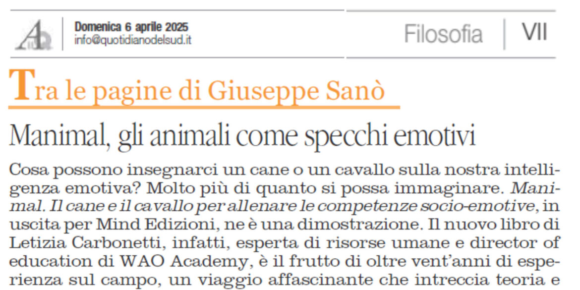 Manimal di Letizia Carbonetti su Il Quotidiano del Sud (6 aprole 2025)